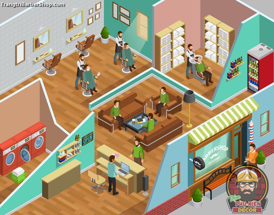 9. Bố cục tổng thể không gian Tiệm Barber, Salon Tóc