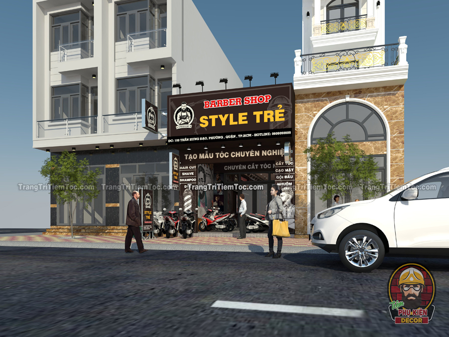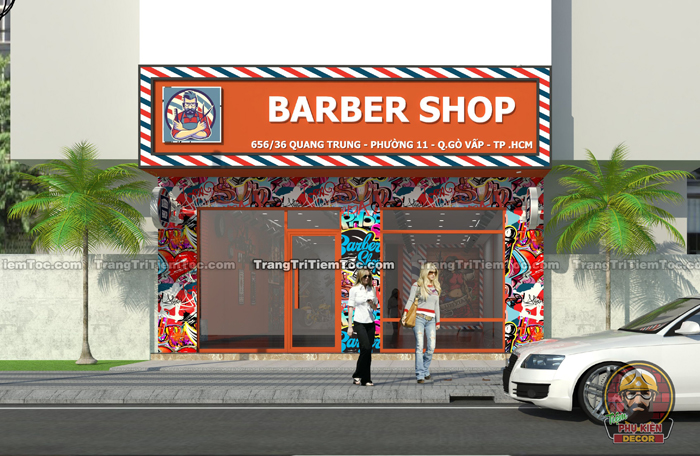 Trang trí mặt tiền Tiệm Tóc Nam Barber đúng cách, sẽ tạo hiệu ứng nhận diện thương hiệu, và thu hút Khách hàng đến Tiệm