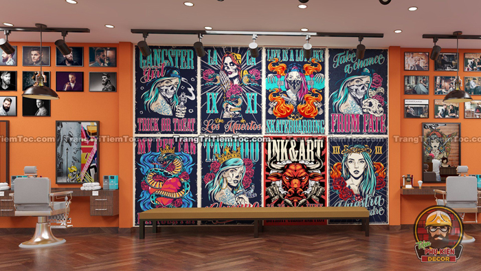 3.4 Trang trí Tường Barber Shop bằng Decal và Tranh Dán Tường