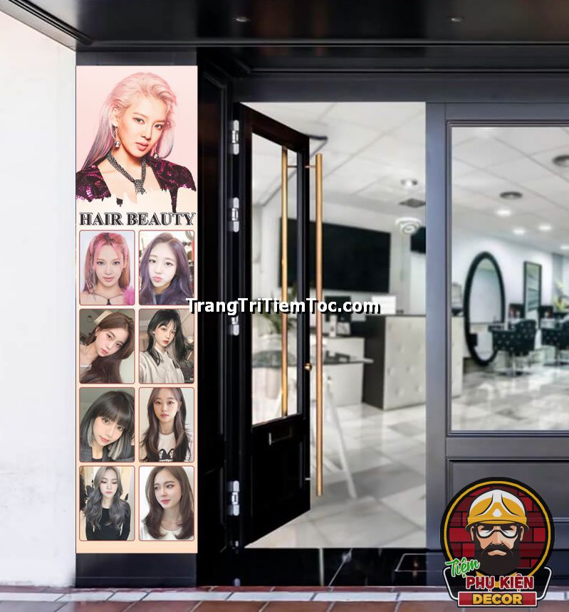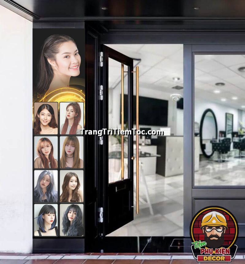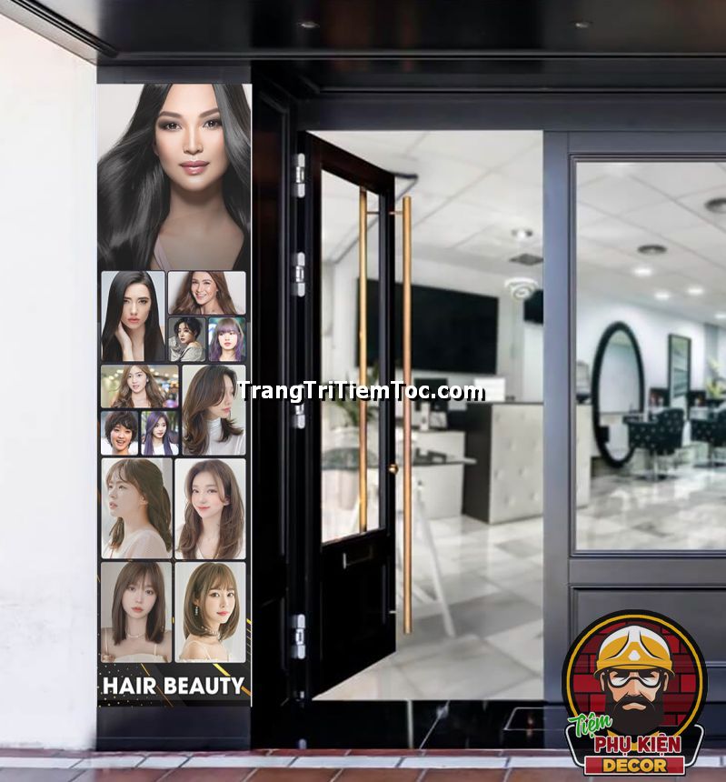 Tranh dán kính trang trí tiệm tóc nữ thu hút khách hàng