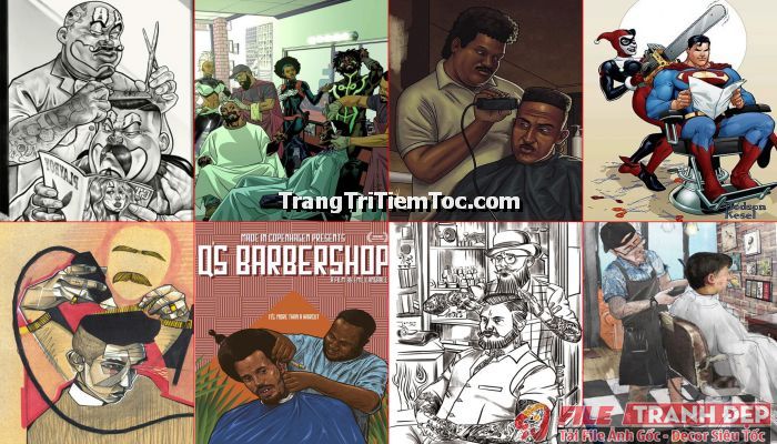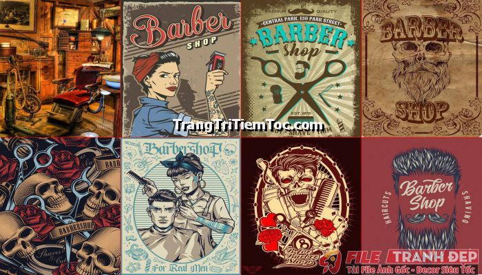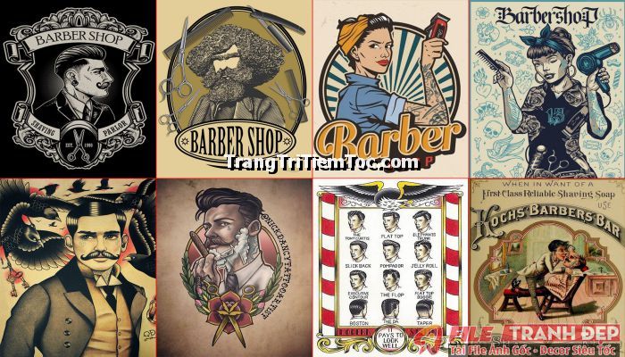 Bố trí một không gian đẹp mắt, thu hút khách hàng sẽ không còn là khó khăn đối với những bạn trẻ đang muốn khởi nghiệp kinh doanh khi các bạn xem qua bài tổng hợp Tranh Decal Tổng Hợp trang trí tiệm tóc nam, barber shop của TrangTriTiemToc.com