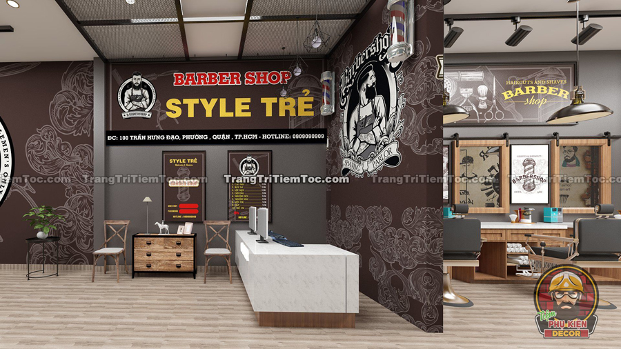 Mở Tiệm Tóc Nam đang là xu hướng thịnh hành hiện nay, một phần vì nhu cầu thị trường tăng cao, phần khác đây là môt mô hình kinh doanh đem lại lợi nhuận lớn cho Chủ Tiệm. Vì thế, việc đầu tư thiết kế Tiệm tóc, Barber Shop đang rất được quan tâm chú trọng. Để mang lại tư liệu tham khảo, giúp Bạn có những ý tưởng độc lạ cho mô hình kinh doanh của mình, Phụ Kiện Decor giới thiệu đến Bạn mẫu thiết kế Tiệm tóc nam nhỏ đẹp, đẳng cấp theo phong cách Barber Shop Châu Âu cực kì sang trọng và ấn tượng.
